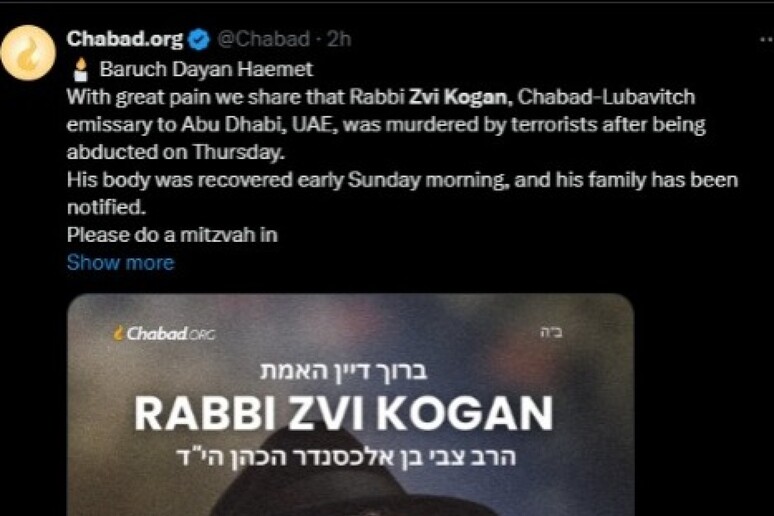 Gli Emirati arabi uniti hanno confermato la morte del rabbino israelo-moldavo Zvi Kogan, aggiungendo che i tre presunti responsabili sono stati arrestati.