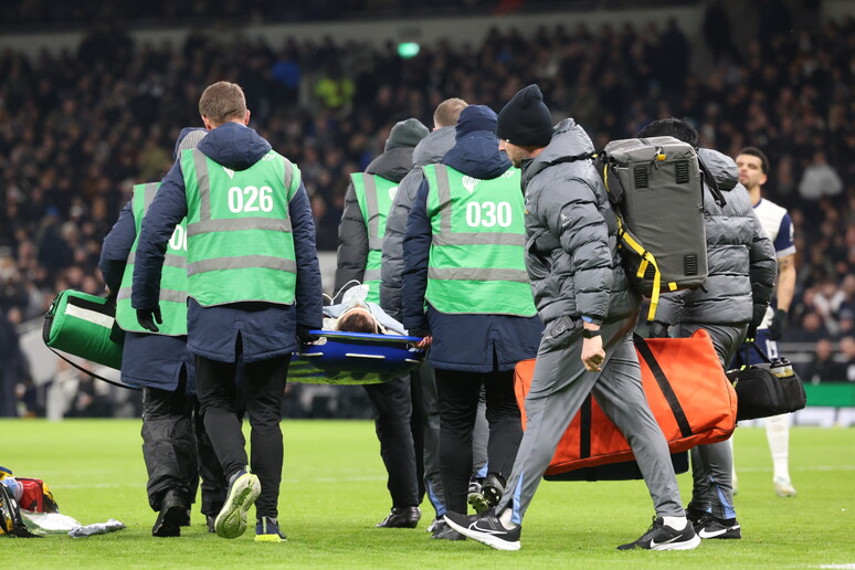 ROMA, 08 GEN - Paura per Rodrigo Bentancur durante Tottenham-Liverpool, semifinale di andata della Carabao Cup o coppa di Lega inglese.