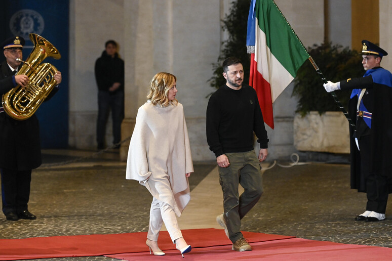 La presidente del Consiglio, Giorgia Meloni, ha incontrato per poco meno di un'ora a Palazzo Chigi il presidente dell'Ucraina, Volodymyr Zelensky.