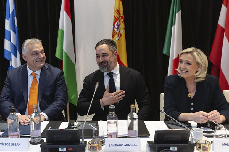 Tantissime bandierine dei tredici Paesi, in rappresentanza dei partiti che aderiscono al partito dei patrioti europei, sono state poste su ognuno dei 2.000 posti a sedere nell'enorme sala dove tra poco inizierà la kermesse sovranista.