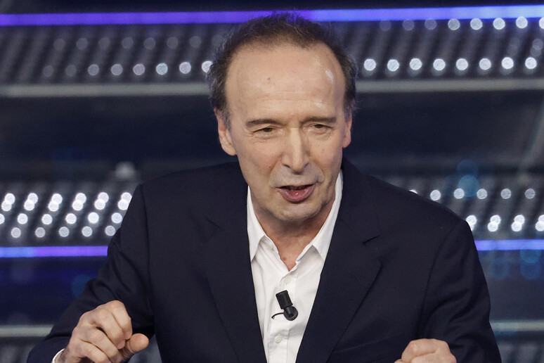 Roberto Benigni,nel suo show Il Sogno,in diretta su Rai1.