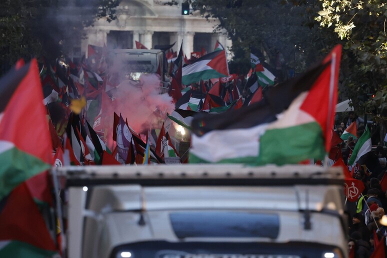 Fumogeni e petardi sono stati lanciati da alcuni partecipanti al corteo pro Pal a Roma contro il cordone di forze dell'ordine di presidio davanti alla sede della Fao.
