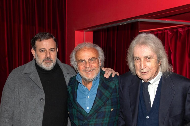 L'abbraccio tra Enrico Vanzina e Jerry Calà, insieme a Fausto Brizzi, ha accolto il pubblico per la prima del musical 'Sapore di sale' al teatro Alfieri di Torino.